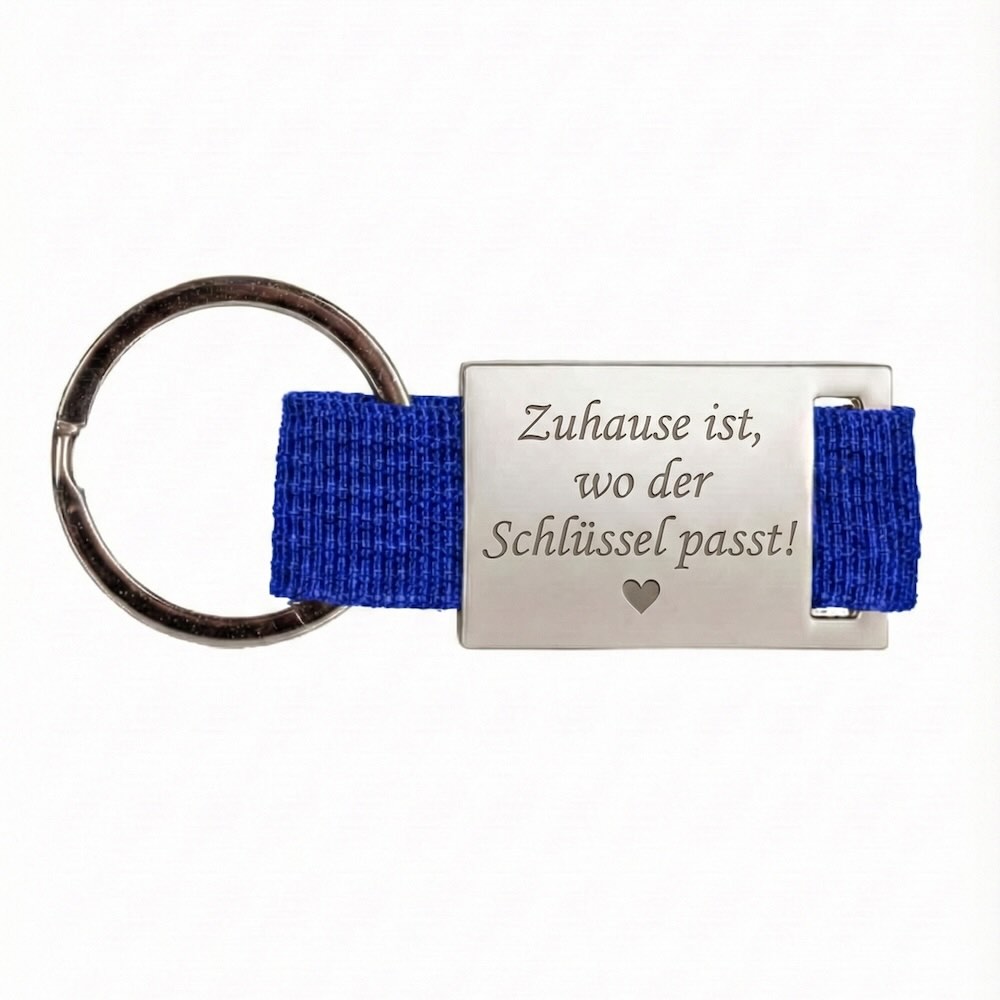 Egal, für welchen Anlass, für einen lieben Menschen ist der attraktive Schlüsselanhänger mit Gurtband ideal als originelles Geschenk. Das Besondere ist, dass Du ihn auf der Platte nach Deinen Wünschen gravieren lassen kannst. Auf diese Weise hast Du ein Mitbringsel, das sicher mit Freude entgegen genommen wird.